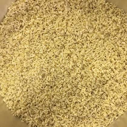 写真右は、本日使用した、アルファベット型のマカロニです。AからZまでありました。