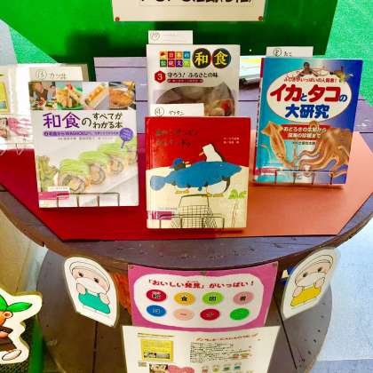 今週の給食図書は玄関ホールに展示しています。本日の給食図書は、給食の時間は給食室で展示し、その後、学校図書館の給食図書コーナーで展示しています。また、先週の給食図書も学校図書館で展示しています。気になった図書があれば、是非読んでみてくださいね。