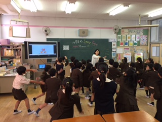 2番目の写真は、2年生で行ったTST(鶴南ストーリータイム)の様子です。"Five Little Ducks"という楽しい絵本を読んで、子どもたちが英語で劇をしました。発音もうまくできてみんなで劇を楽しみました。