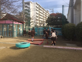 休み時間には、運動場で友だちと元気に遊んだり、新しく作られたジャンプボードでなわとびをしたりする子どもたちの姿が見られました。