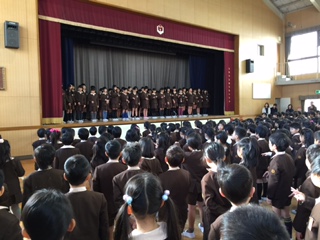 最後に6年生の手話に合わせてみんなで校歌を歌って、始業式を終わりました。