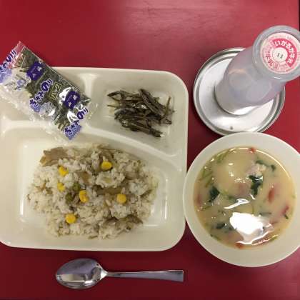 明日の献立は「さつまいもと豚肉の甘辛煮・れんこんの米粉てんぷら・きゃべつのおひたし・ごはん・牛乳」です。明日の給食も楽しみにしていてくださいね。