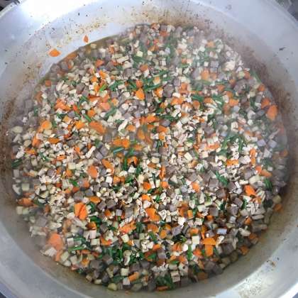 筑前煮は、鶏肉、にんじん、ごぼう、れんこん、こんにゃく等が入った、煮物献立でした。筑前煮は、炒めてから煮る福岡県の郷土料理です。