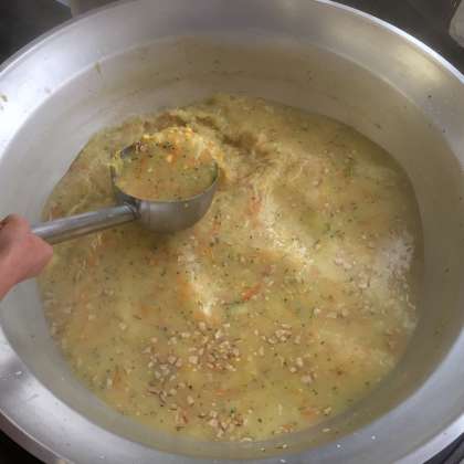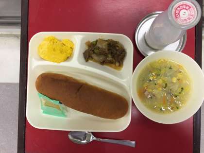コーンスープは、ベーコン、にんじん、はくさい等が入った、汁物献立でした。