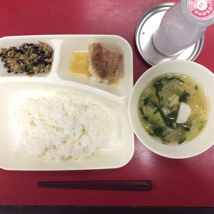 本日の献立は「赤魚のレモンじょうゆかけ・うすくず汁・高野どうふのいり煮・ごはん・牛乳」でした。