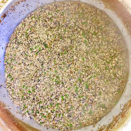 高野どうふのいり煮は、豚ひき肉、にんじん、ひじきを炒め、だし、粉末の高野を加えて煮た、いため煮の献立でした。