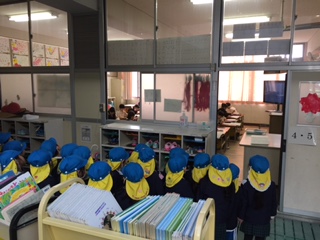 お昼には、鶴見菊水幼稚園と保育所の子どもたちが、学校見学にきました。1年生の授業を中心に、静かに熱心に見学していました。この中からも多くの子どもたちが本校に入学すると思います。楽しみに待っています。