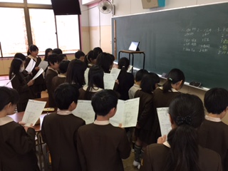 2月28日(火)2月最終日になりました。3月10日に行う「卒業をお祝いする会」に向けて、1年生〜5年生ががんばっています。これまでお世話になった6年生に喜んでもらおうと、「お祝いの歌」を録音したり、各教室によびかけの練習をしに行ったりしています。中でも5年生は在校生の中心として、みんなをリードしています。こうした活動の中で、最高学年になる準備をしていくのですね。