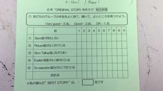 今日の発表では、ところどころに英語を使い、声色を変えたり、擬音を入れたりしながら楽しく発表しました。6年生の子どもたちは他のグループの良いところも見つけて相互評価し、各クラスのベストグループを選びました。来週は4クラスのベストグループを学年みんなで見る予定です。