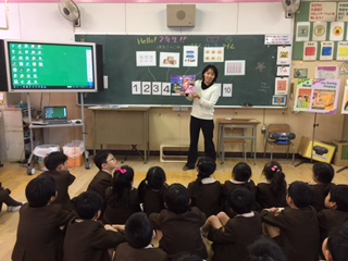 2年生は、学年最後のTST(鶴南ストーリータイム)をしました。初めに1〜10の英語の数を使ってアクティビティをした後、"Where's Sam?"(サム、どこにいるの)という絵本の読み聞かせを楽しみました。2年生の子どもたちは金村先生と一緒に声を合わせて読んだり、ゲームをしたりして英語に慣れ親しみました。
