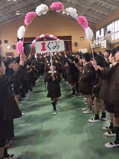 3月10日(金)5時間目に講堂で「卒業をお祝いする会」をしました。5年生から1年生までが手拍子で迎える中を6年生が少し恥ずかしそうに入場して、会が始まりました。なかよし班でのゲームや、みんなの寄せ書きのプレゼント、6年生のから歌「桜の雨」と手縫いのぞうきんのプレゼント、6年生へのインタビューとプログラムは進み、1〜5年から「友よ」の歌のプレゼントで最高潮に達しました。最後に校長先生から「これまで学校を引っ張ってきてくれてありがとう。中学校でも頑張ってください」とお話があり、校旗のバトンタッチをして、6年生の退場を見送りました。今日まで準備を進めてきた5,4年生にとって大きな成功体験になったと思います。