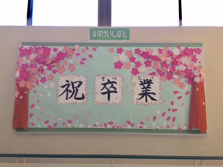 今日は昨日に続けて4,5年生と、ともだち学級からの「卒業おめでとう」メッセージを紹介します。4,5年生はクラブ活動や委員会活動で6年生と一緒に活動することも多かったので、親近感も強いようです。また、ともだち学級では今週の月曜日の「みんなあつまれ」の時間に、ともだち学級で「卒業をお祝いする会」を行いました。
