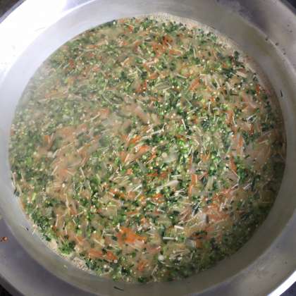みそ汁は、だしこんぶとけずりぶしで取っただしに、にんじん、だいこん、たまねぎ等が入った、汁物献立でした。