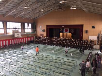 新6年生は、講堂での式場準備や、新1年生教室やトイレ等の清掃等をがんばりました。また、新2年生は「歓迎のことば」の練習をがんばりました。