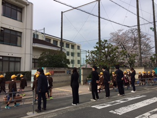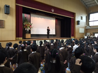 4月10日(月)約2週間の春休みが終わって、久しぶりに学校に子どもたちの元気な声が戻ってきました。集団登校して、ひとまず前の学年の教室に入った後、講堂に移動して、初めに離任した教職員のメッセージビデオを見ました。次に着任した教職員の紹介がありました。始業式では、校長先生から「一つずつ学年が上がった気持ちを大切にして、今年一年がんばりましょう。」というお話に続いて、担任発表がありました。6年生の手話に合わせて校歌を歌った後、クラス替えをしました。各組では自己紹介をしたり、新しい教科書を受け取ったりして下校しました。