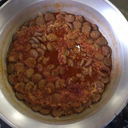 煮こみハンバーグは、よく炒めたたまねぎをケチャップ、ウスターソースで味付けし、その後にハンバーグを加えて煮込んだ、煮こみ料理の献立でした。