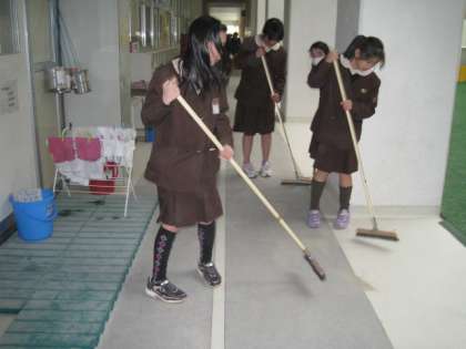 今回は土曜日の公開授業に向けて学校を美しくしようということで、全学年が手分けをしてふだんそうじの行き届かない所や、トイレ・廊下などをていねいに掃除しました。