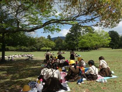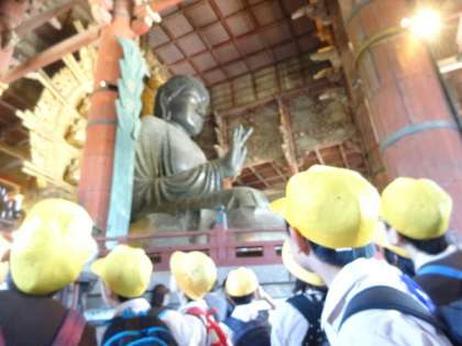 4月24日(月)に奈良公園へ春の遠足に行ってきました。東大寺大仏殿では、高さ18メートルの大仏の大きさに圧倒されながら、じっくり見学しました。その後いよいよ子どもたちが楽しみにしていたオリエンテーリングです。各班に分かれて、二月堂、春日大社、そしてゴールの飛火野の3つのポイントをまわりました。どの班も地図を見ながら、協力してゴールすることができました。道中では、たくさんの鹿を見ることができました。子どもたちは「かわいい!」と声をあげ、とても満足した様子でした。