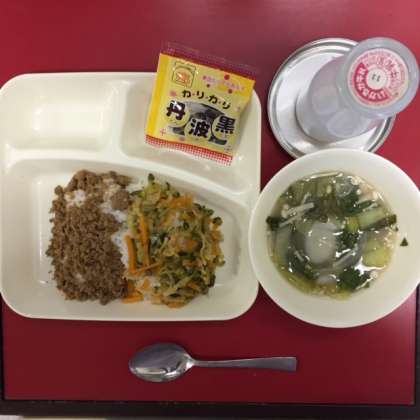 本日の献立は「ビビンバ・トック・いり黒豆・牛乳」でした。