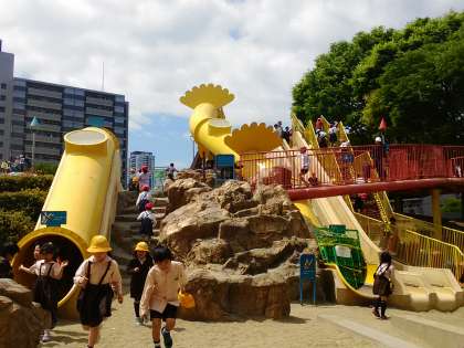 たっぷり遊んだあとは、待ちに待ったお弁当タイム!お天気もよく扇町公園の芝生広場でおいしく食べました。公園の遊具でもたくさん遊びました。ルールを守ってなかよく楽しく活動できました。