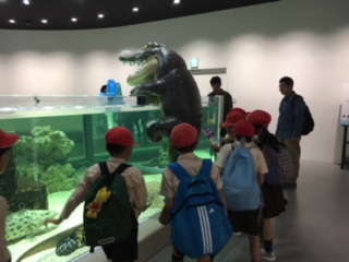 4月27日(木)に、二フレルと万博公園へ春の遠足に行ってきました。地下鉄、モノレールを4回乗り継ぎ万博記念公園駅に到着し、まず二フレルに向かいました。二フレルでは各班に分かれて生き物の色や、姿や動きに触れました。子どもたちは「この魚の色きれい!」「ワニ大きいなあ!」と、とても興味深く観察していました。特に生き物が自由に動き回れるエリアでは、ペリカンが目の前を飛びまわり、その迫力に圧倒されていました。その後万博公園に移動し、芝生の上でシートを広げてお弁当を食べ、みんなで「おにごっこ」や「だるまさんが転んだ」などをして仲良く遊びました。