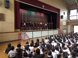全校朝会ではクラブ代表があいさつをしました。クラブ活動があるのは4年生以上ですが、6年生のクラブ代表が「4年生、5年生が楽しく活動できるクラブにしていきたいです。」とりっぱに発表するのを、全校児童がしっかり聞けました。