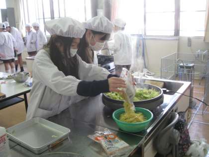 2月20日(木)6年生が小学校最後の調理実習をしました。献立は「お好み焼きと焼きそば」で、「大阪のB級グルメ」を自分たちで作って味わうという学習です。
