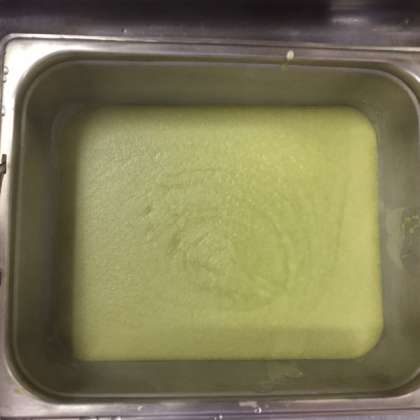 まっ茶ういろうは、水、砂糖、上新粉、まっ茶、白いんげんペーストをよく混ぜ合わせ、焼き物機で蒸しあげた、和食のデザート献立でした。