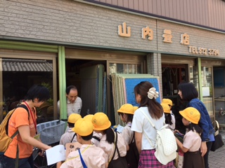 2年生は、昨日雨で行けなかった町たんけんに今日行ってきました。グループに分かれ、保護者の方にもお手伝いいただいて、予めお願いしておいた校区のお店や施設に行きました。お店や施設の方は、子どもたちを笑顔で迎え、お仕事の手を止めていろいろお話ししてくださいました。子どもたちも「一日にどれぐらいのお客さんが来ますか?」や「おしごとをしていてうれしいときはどんなときですか?」等と質問していました。