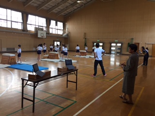 5年生は体育館で「とびばこ運動」の公開授業を行いました。「首はねとびの練習をしよう」という課題のもとで、安全に楽しく運動できる場作りをし、さらにタブレット端末で自分の動きをチェックする工夫を取り入れたので、5年生の子どもたちはしっかり運動できたようです。またともだち学級でも、5年生の国語「世界でいちばんやかましい音」の公開授業を行い、子どもががんばっている様子を参観しました。