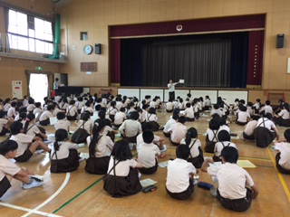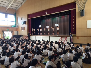 児童集会では、集会委員会が「○○している人は何人いたでしょう?」の楽しいゲームをしてくれました。朝から全校児童で、楽しい時間が持てました。