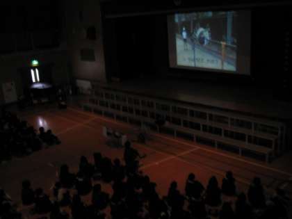 球技、器械・陸上、バドミントン・バスケットボール、卓球、室内ゲーム、科学の6つのクラブの活動の様子を撮影したビデオを講堂でみんなで視聴しました。
