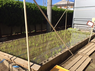 5年生は社会科の学習の一環で、田植え体験をしました。校舎裏の水田に、イネの苗を植えていくのですが、まっすぐ並べて植えていくのは難しいし、泥の中に足が入る子もいて大変でした。それでも子どもたちは「お米ができるのが楽しみです。」と言っていました。自称「つるなんこまち」が順調に育って、実りの秋を迎えられるといいですね。