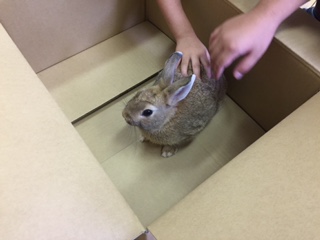 1年生は、生活科の学習で、ウサギのチョコとチロルとのふれあい体験をしました。一人ずつ実際に手で触れてみて「ふわふわしてやわらかかったです。」「あったかかったです。」と言っていました。