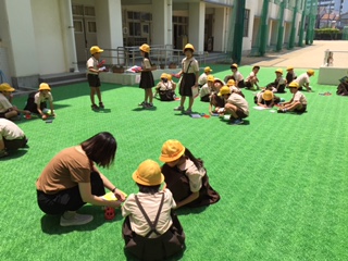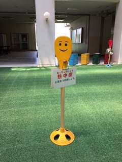 気象予報で「熱中症 厳重注意」のお知らせが出たので、学校でもグリーンマット掲示して注意喚起しました。4年生は、理科で「光電池とモーターの回る速さ」の学習をしています。今日のお天気は、太陽電池の実験には最適なので、太陽電池に日光を当ててみました。すぐにモーターが回り始めてファンが扇風機のように風を送ったので、子どもたちは「すずしいです。」「太陽の光で電気ができてモーターが回ったのがすごかったです。」と言っていました。Super Franceも喜んでいました。