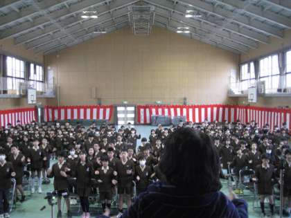 本校では始業式や終業式など大切な式では全児童で校歌を歌い、その際舞台上で6年生が手話をします。1〜5年生は「いざいざ進め、鶴見南」のところを一緒に手話をします。