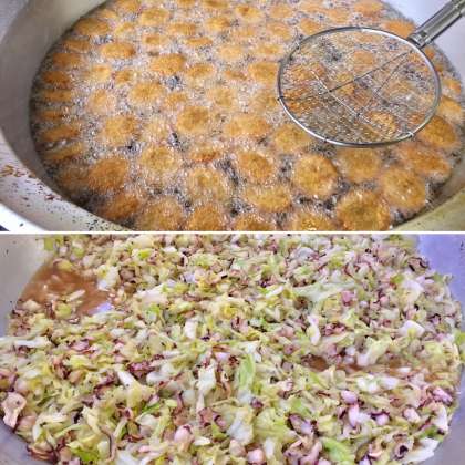 下段の写真は、揚げているチキンレバーカツと、出来上がったたことキャベツのソテーです。明日の献立は「夏野菜のカレーライス・キャベツのサラダ・みかん(冷)・牛乳」です。明日の献立も楽しみにしていてくださいね。