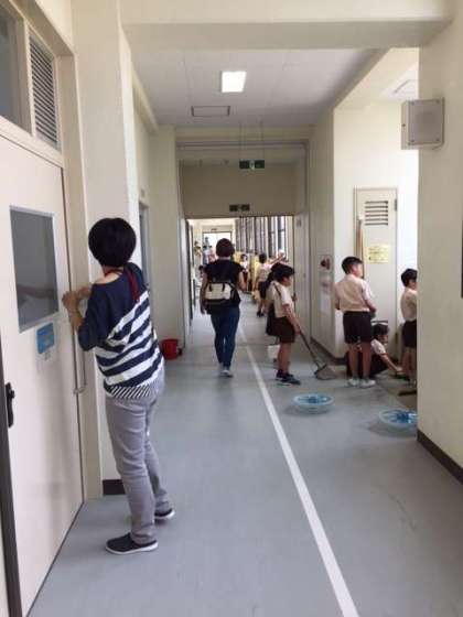 8月26日(土)始業式の翌日の土曜授業で「親子清掃」をしました。1年生保護者ボランティアの方が100名近く参加していただいて、子どもたちと一緒に、トイレ・手洗い場や教室・廊下をきれいにしてくださいました。清掃終了時には子どもたちから「ありがとうございました」とお礼を言いました。