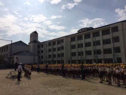 朝夕は少し涼しくなりましたが、昼間はまだまだ気温の高い日が続きます。今週はプール水泳や、運動会練習をする学年もあるので、体調管理に十分気を付けてください。