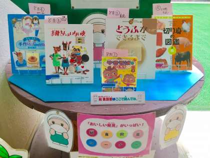 また、本日の給食図書は給食終了後、玄関の給食図書コーナーに展示しています。