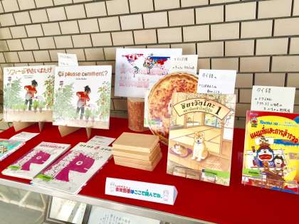 食育に関する図書を1ヶ月ごとにテーマを変えて玄関に設置しています。今月のテーマは「食べものが登場する世界の図書」です。