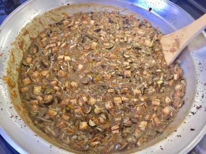 マーボーあつあげ丼は、にんにく、しょうが、牛・豚ひき肉、なす、たまねぎ、あつあげ等で作ったあんをごはんにかけて食べる、どんぶり献立でした。