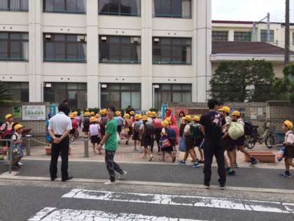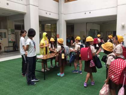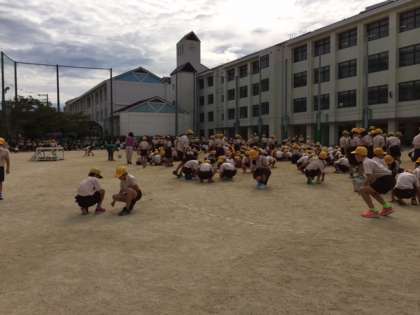 全校朝会では校長先生から「5日に行った防災訓練は、皆さんが学校にいる場合でしたが、家に帰ってからJアラートが鳴った場合も自分の身を守る行動を取りましょう。」というお話がありました。