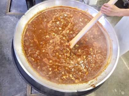 下段の写真は、ハヤシライスを煮込んでいる様子です。