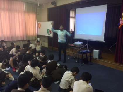 全校朝会では、校長先生から「先週は6年生が修学旅行でりっぱに行動しました。昨日は、はぐくみネットスポーツフェスタにたくさんの人が参加しました。もうすぐ11月になります。体調に気を付けて、学習やスポーツにがんばりましょう。」というお話がありました。