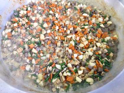 下段の写真は、ふきよせ煮を煮込んでいるところです。