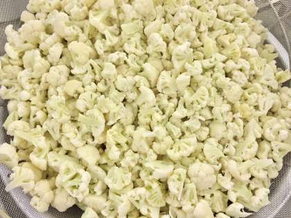 下段の写真は、酢茹でしたカリフラワーです。酢を入れることで、白く茹であがります。