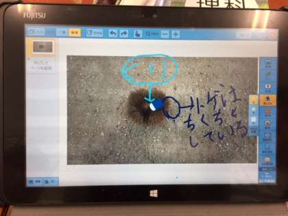 4年生は理科で「秋の自然」について学習しています。校内で、樹木の紅葉など秋の変化を見つけて、グループごとにタブレットで撮影し、それを大画面テレビで紹介し合うというICT活用も取り入れて行っています。