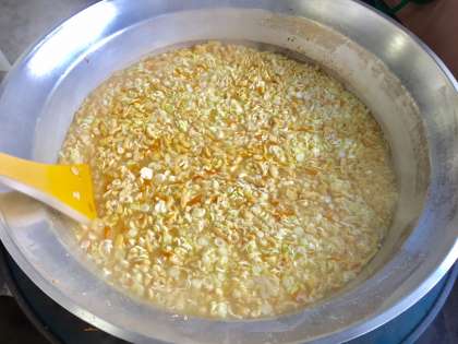 けんちん汁は、れんこん、さといも、とうふ等を炒め、だしこんぶとけずりぶしで取っただしを加えて煮、塩、しょうゆで味付けした、汁物献立でした。