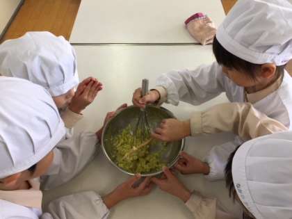 11月15日(水)2年生が、収穫したサツマイモを使って、生活科でスイートポテトを作りました。